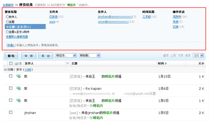 全文搜索优化:对搜索结果加入更多筛选条件,在搜索结果较多时更加高效。